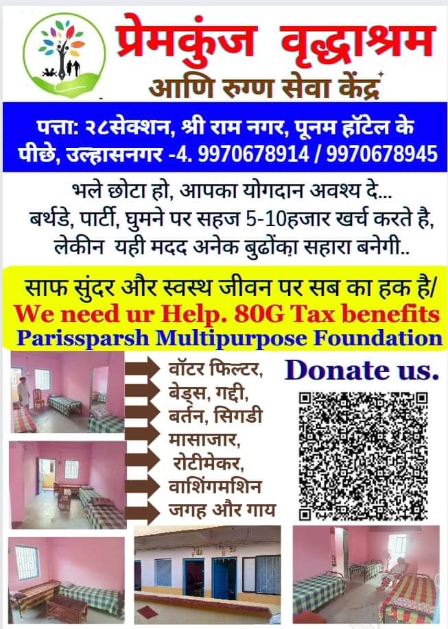 महाराष्ट्रातील उल्हासनगर येथे स्थित परिसस्पर्श फाउंडेशनचे प्रेमकुंज वृद्धाश्रम आणि आरोग्य सेवा केंद्र हे घरापासून दूर घर शोधू इच्छिणाऱ्या समाजातील ज्येष्ठांसाठी सुरक्षित ठिकाण आहे.